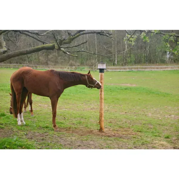 • Weidende dieren: Plaatsen op rughoogte. Het zout gaat dan via de steen langs de paal naar beneden.