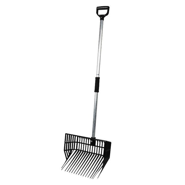 Kunststof mestvork met opstaande zijkanten en een deelbare aluminium steel en stevige handgreep.Productspecificaties:- Diepe mestvork voor meer mest gemak- 17 vrij elastisch beweegbare tandenAfmeting: +/- 38 cm x 30 cm