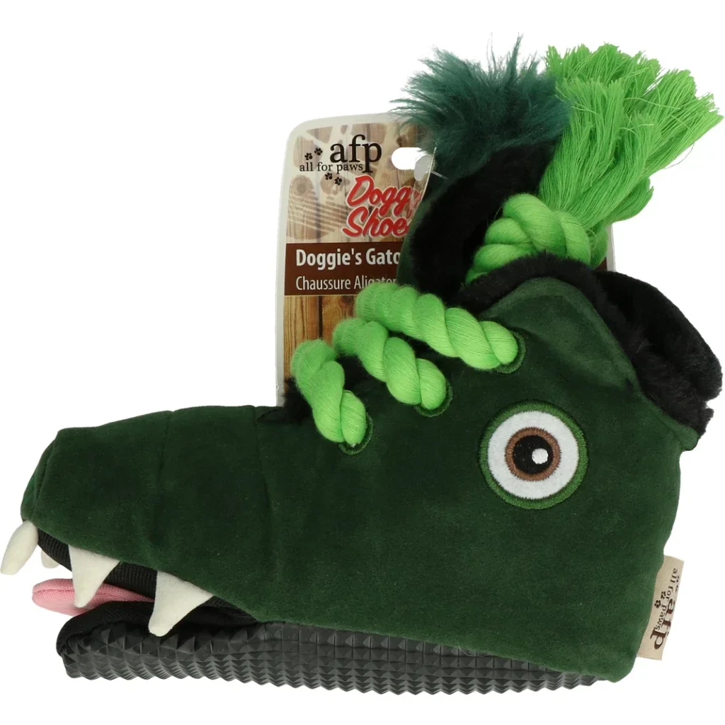 Eindelijk een schoen waar uw hond wel mee spelen mag! Gemaakt van heerlijk zachte badstof aan de binnenzijde en een iets ruwe onderzijde om dit speeltje nog realistischer te maken. Dit speeltje is tevens voorzien van een squeaker (pieper) voor extra speelplezier en katoenen flosstouw om het gebit te reinigen.